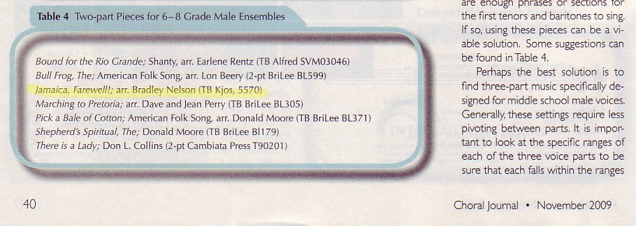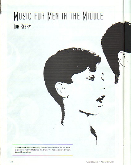 "Music For Men In The Middle" - p. 34 ~ by Lon Beery Choral Director Spry Middle School Webster, New York