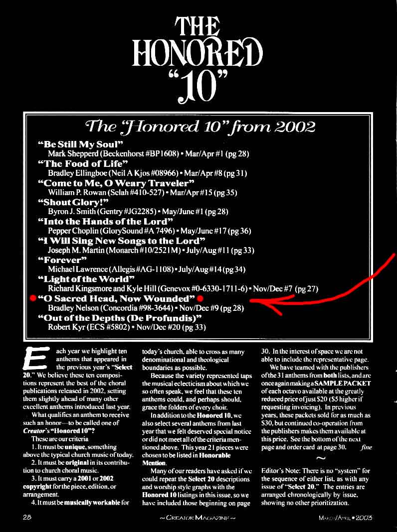 "The cello adds color and character to this lovely setting of the 'passion chorale' ......the vocal parts are not difficult....the organ part, deftly understated. Ah, but the cello is at the heart of the matter, and its soaring line makes this setting special." "Highly recommended."