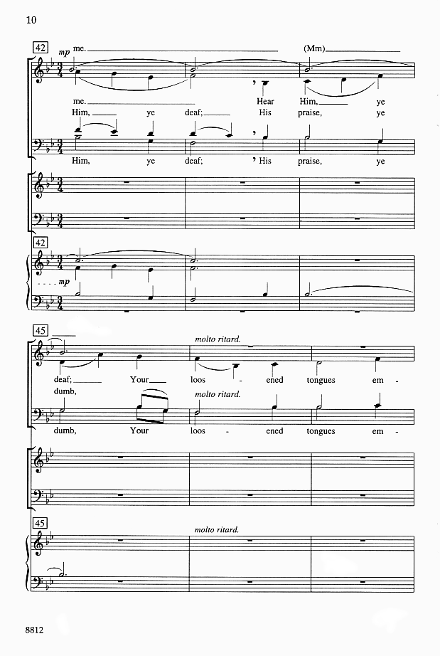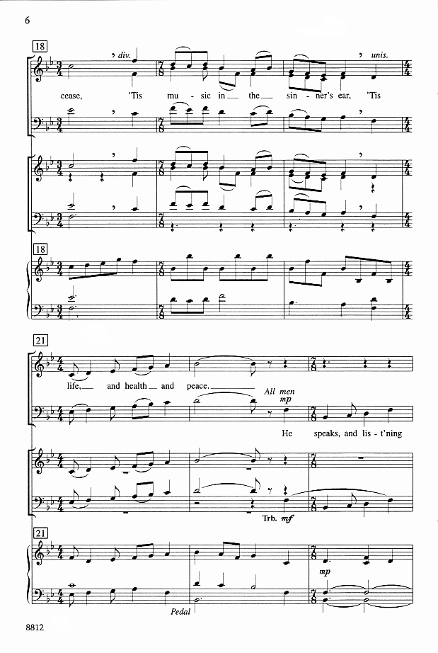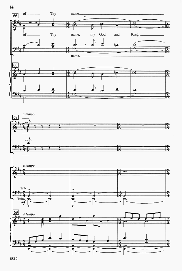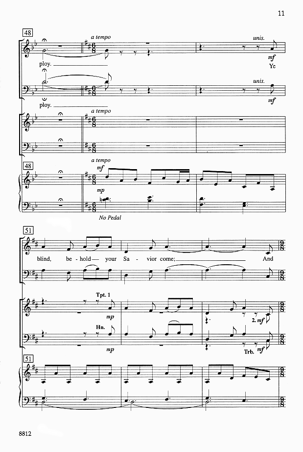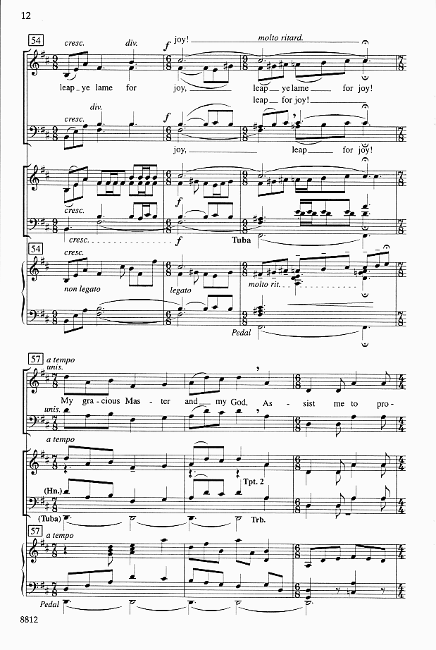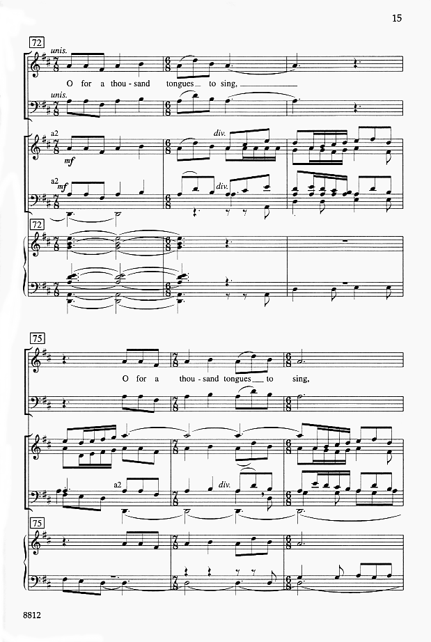 This vigorous anthem with optional Brass Quintet was commissioned for the 95th Anniversary of Castleview Baptist Church in Indianapolis, Indiana. The mixed meter employed throughout the music logically follows the natural rhythm of the words. The lilt created by these shifts in meter imparts a joyful buoyancy. Although challenging, this festive anthem is worth the effort! It concludes with powerful and idiomatic writing for the brass. Look for this new octavo and free CD now available.