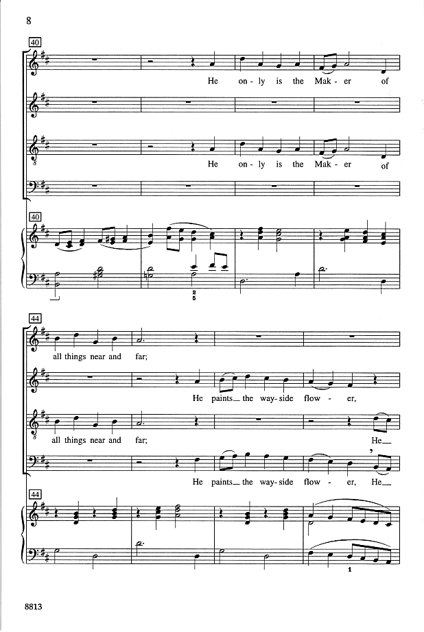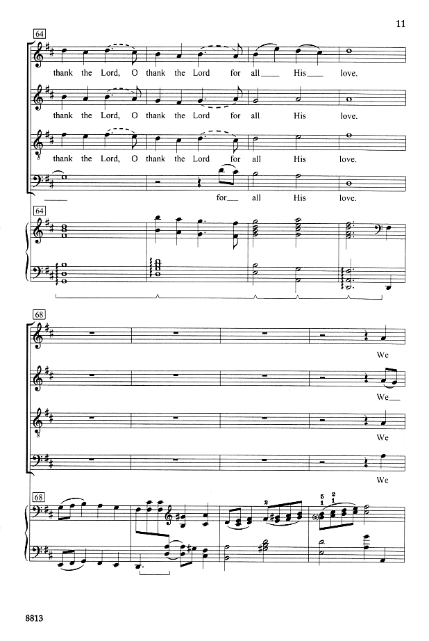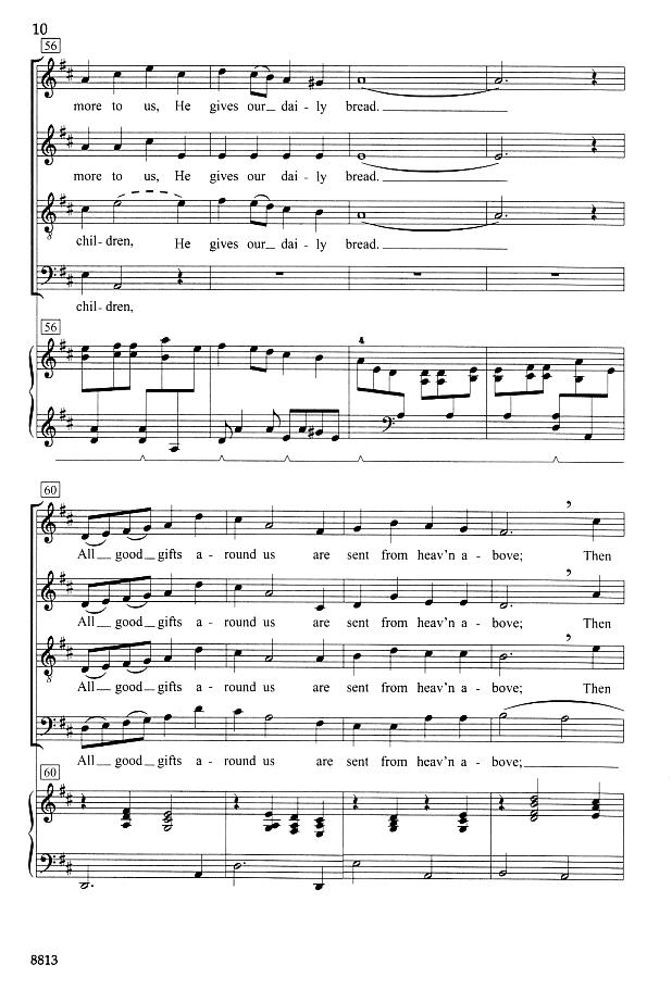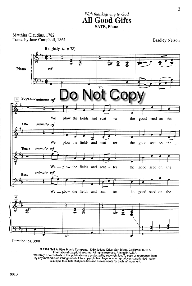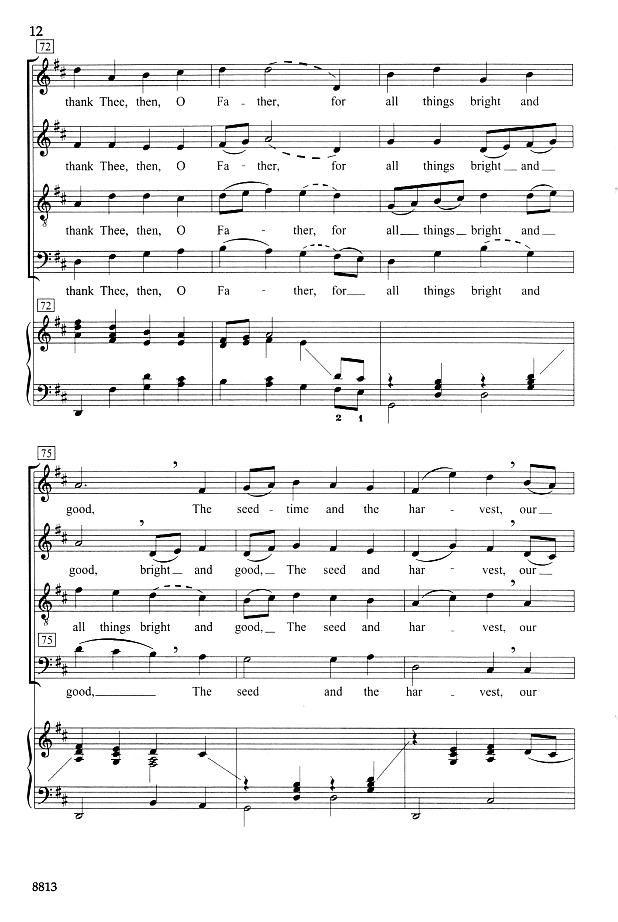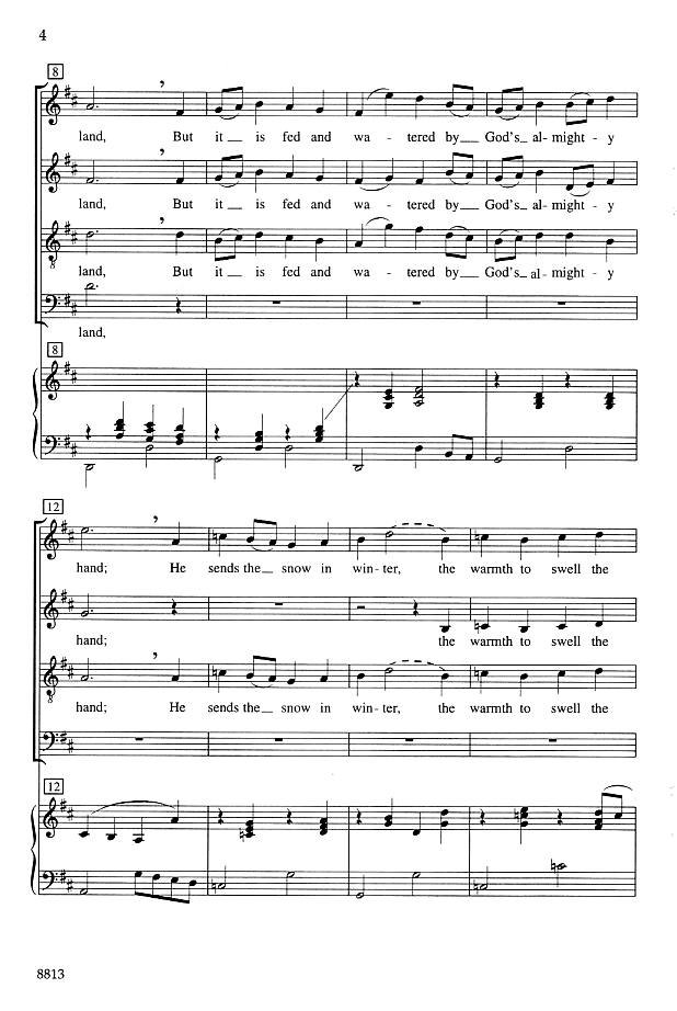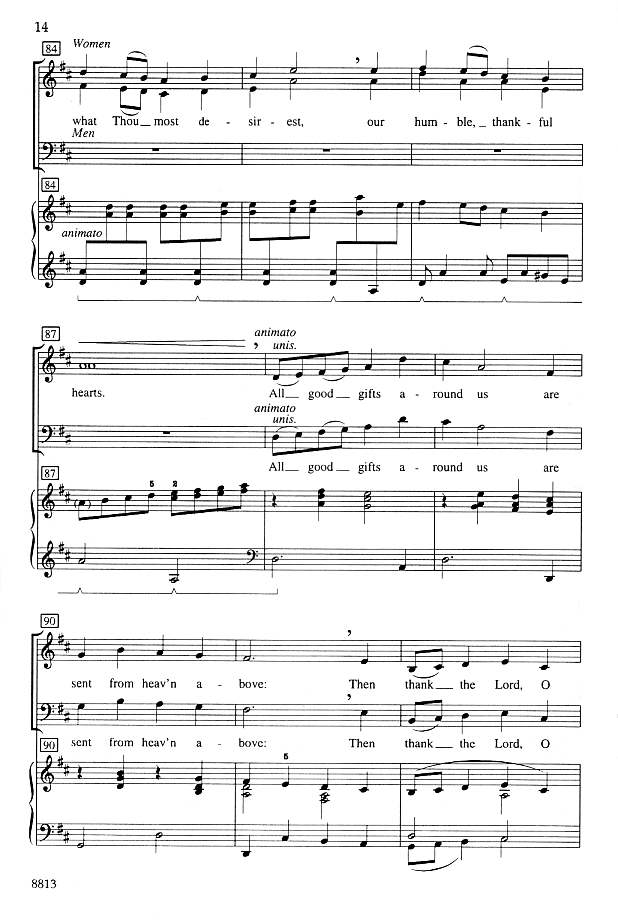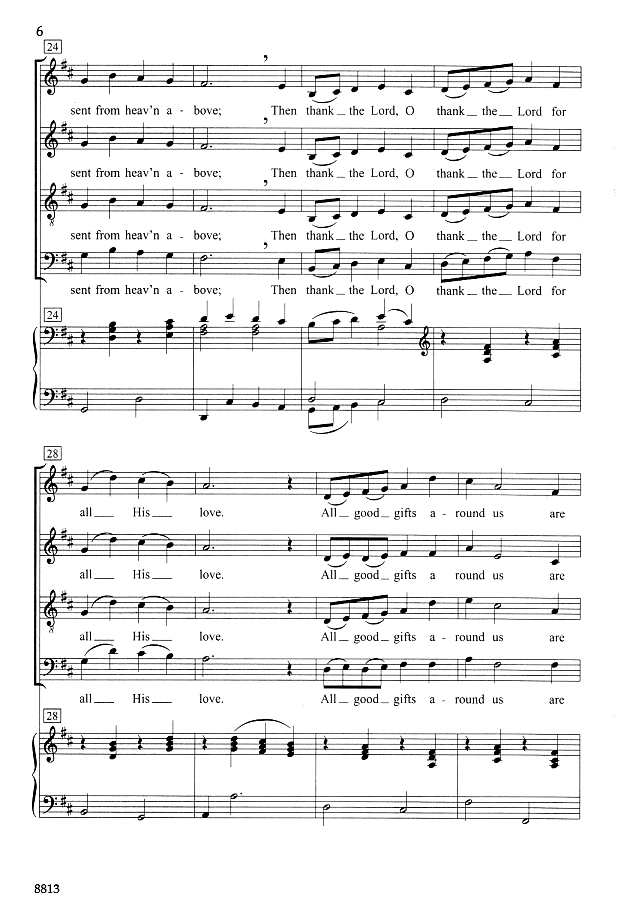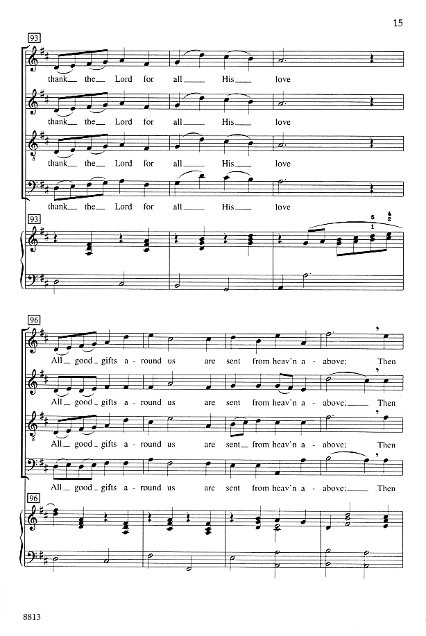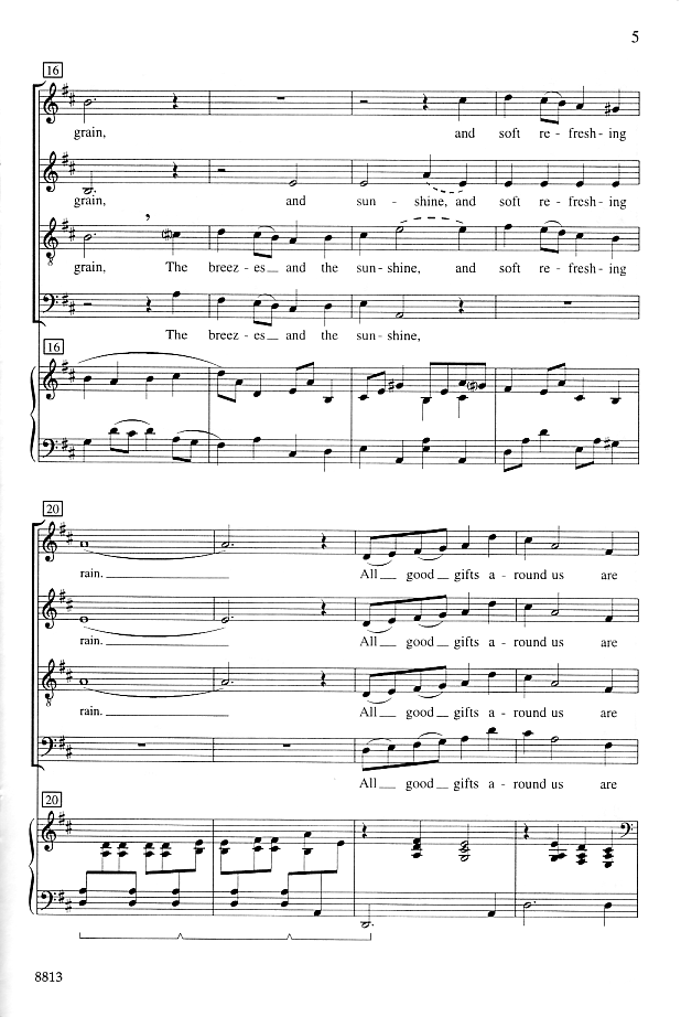 Do you find there's a shortage of good selections for Thanksgiving? Singers and congregations will recognize this text from the hymn "We Plow The Fields and Scatter". Set to new music with a buoyant Thanksgiving spirit, this traditional text receives new life in a setting well-suited to both small ensembles and larger choirs.
